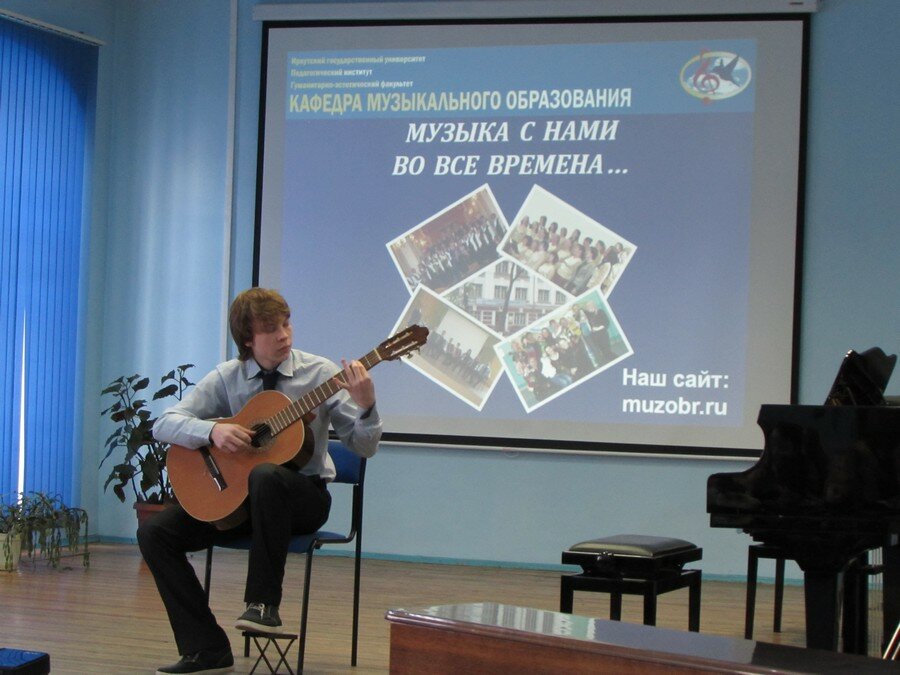 Концерт предварила презентация кафедры музыкального образования, а затем студентка 3 курса Елена Ключерёва исполнила пьесу Игоря Шамо «Тройка» (класс к.психол.наук, доцента Л.Г. Ушаковой).