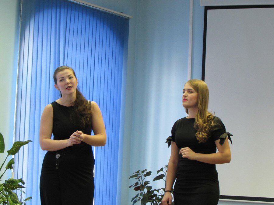 Дуэт студенток 3 курса Марии Казаковой и Натальи Шашковой (класс Заслуженного артиста РФ, доцента Н.А. Прошина) исполнил песню Л. Денца «Качели».