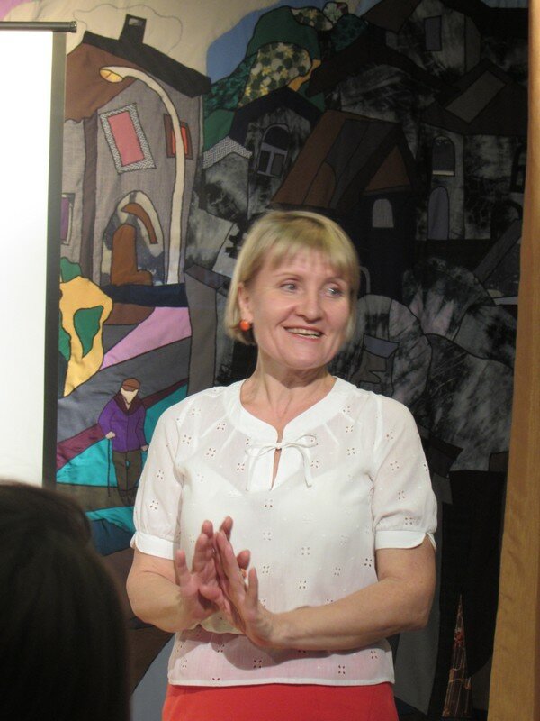 Выпускница Агеева Мария рассказала о своей работе «Харлампиевская церковь», выполненной в технике холодного и горячего батика под руководством старшего преподавателя Надежды Петровны Русиновой.